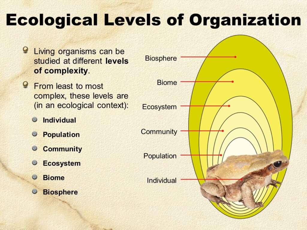 In contrast, ecologists adopt an integrated approach towards the natural environment. They delve into the interrelationships among different organisms and their collective impact on the habitat. Ecological research is categorized into six levels, ranging from the most comprehensive, the biosphere, to the most specific, the individual organism.