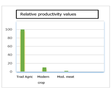 According to Tivy and O’Hare (1981) the ER value of pre-industrial crops could be calculated at > 10; crop farming is ten times less productive at a value of 1; whilst animal rearing is the most inefficient at 0.1. By comparison modern industrial forms of food production (ER 0,5-5,0) are less energy effective than semi-industrial forms (ER 2-10) and this is especially so when compared to subsistence farming systems (ER 10-70).