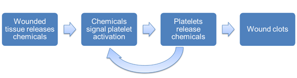 Figure 4: The process of wound clotting is a positive feedback loop.
