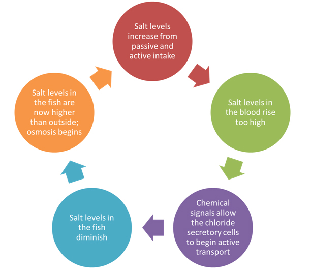 Figure 6: The process of osmoregulation in saltwater fish is a constant negative feedback loop.